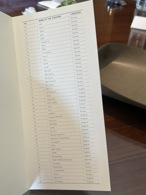 가운데 테이블에 친절하게 TV 채널 가이드가 있더라구요!
